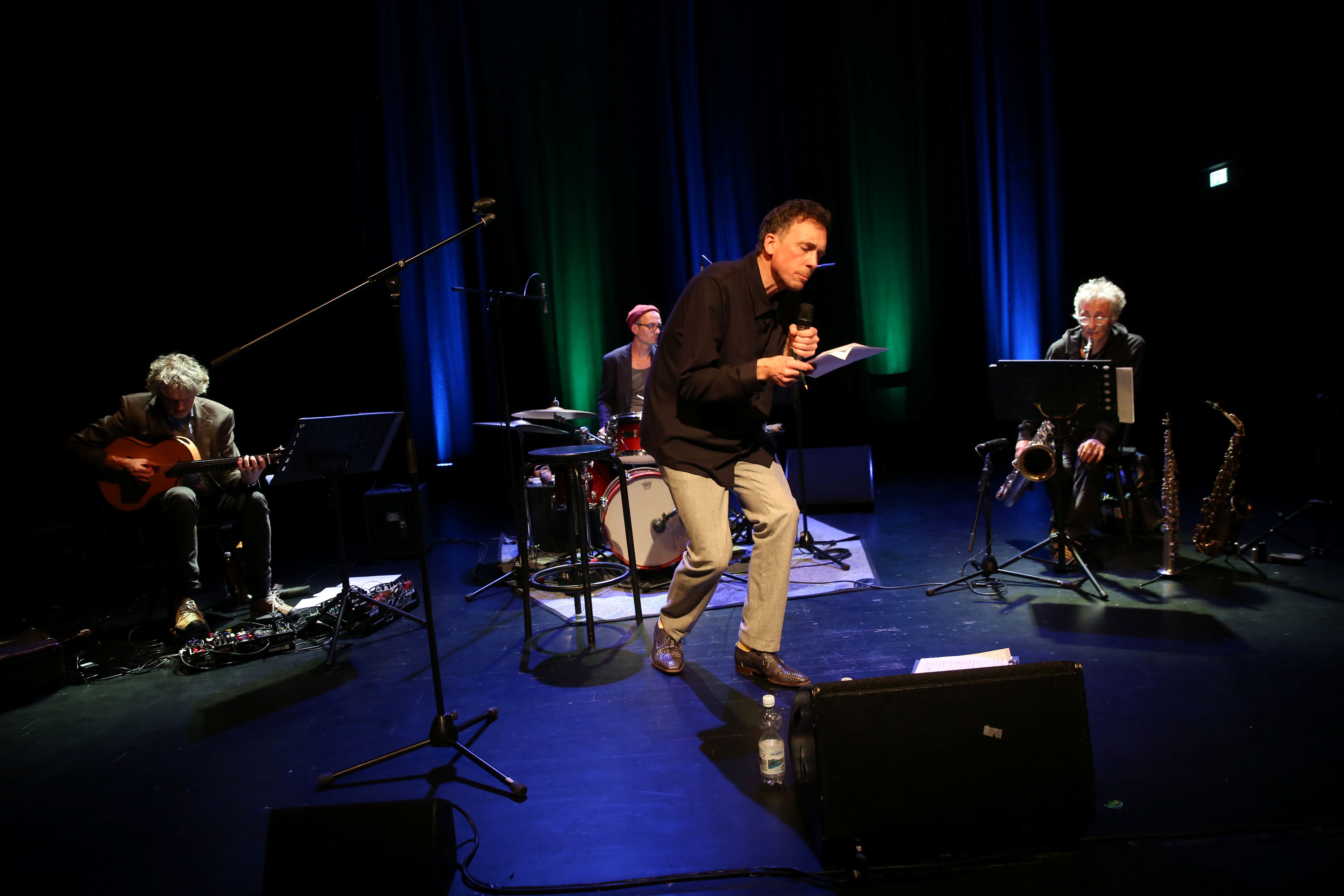 Gemeinsam mit Boris Kischkat (Gitarre, Looper), Andreas Krennerich (Saxophone) und Daniel Kartmann (Percussion) nimmt Timo Brunke die schwerwiegende Realität zwischen die Zähne, hebt sie sachte ein wenig an, und siehe da: zwischen den liebevoll aufrechterhaltenen Kulissen unseres Zusammenlebens bleibt nichts, wie es war. Weniger noch: nichts war je so, wie es schien. Aber das macht nichts: die hier versammelten Moritaten, Momentaufnahmen und Poëme erheitern, stiften Emotionen wie Distanz und neue Zugänge zum Altbekannten.